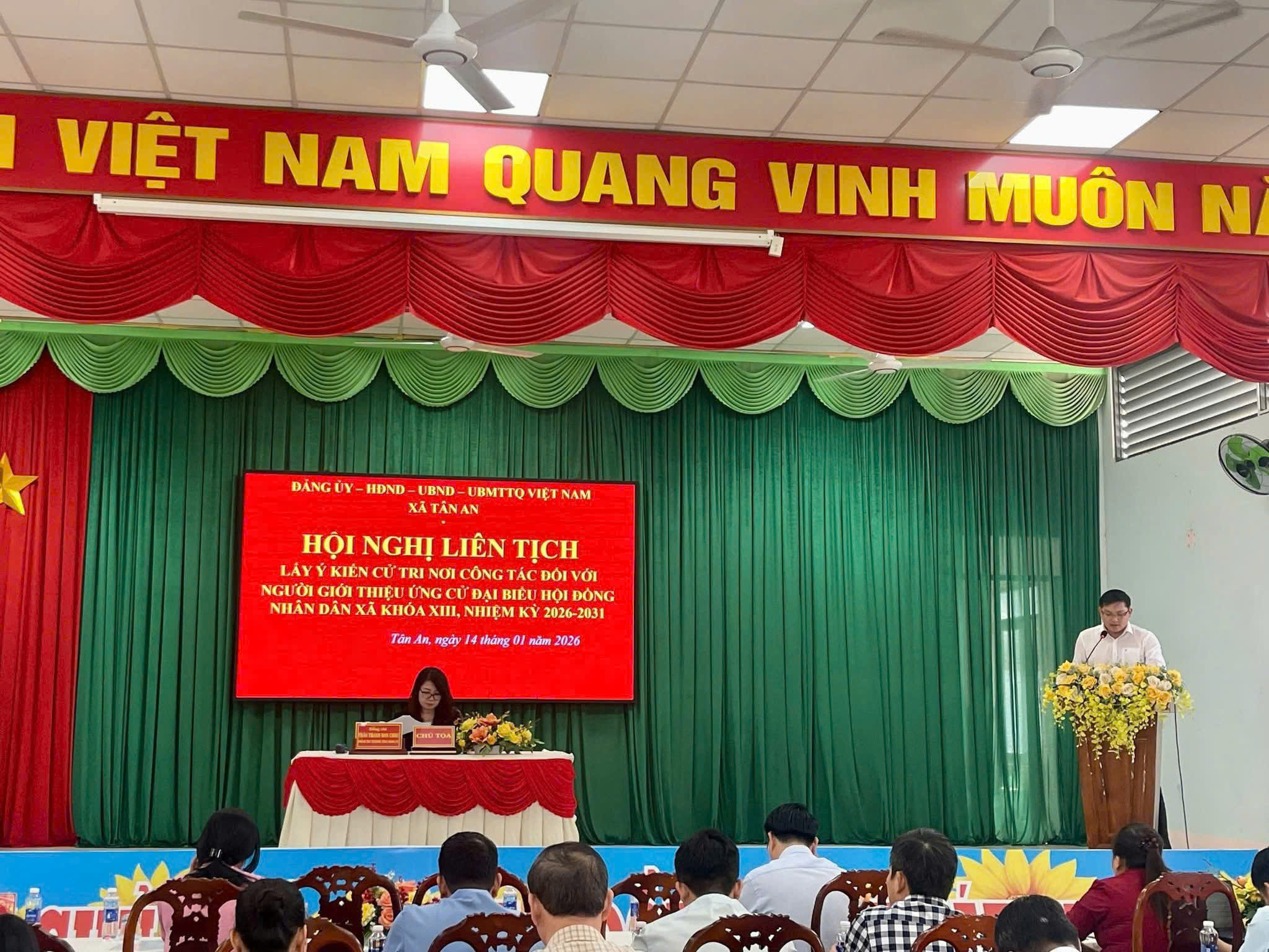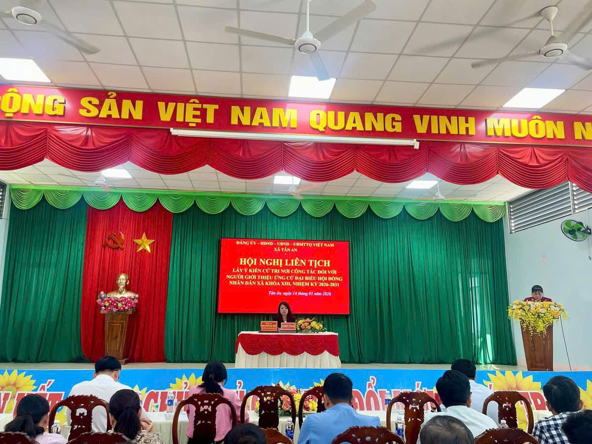 Thực hiện quy trình giới thiệu người ứng cử đại biểu Hội đồng nhân dân xã nhiệm kỳ 2026–2031 theo quy định của Luật Bầu cử và các văn bản hướng dẫn của Ủy ban Thường vụ Quốc hội, Ủy ban Trung ương MTTQ Việt Nam, sáng ngày 14/01/2026, tại hội trường UBND xã, Đảng ủy xã Tân An tổ chức Hội nghị liên tịch giữa Đảng ủy, Thường trực HĐND, UBND, Ủy ban MTTQ Việt Nam xã để lấy ý kiến cử tri nơi công tác đối với người được cơ quan giới thiệu dự kiến ứng cử đại biểu HĐND xã nhiệm kỳ 2026–2031.